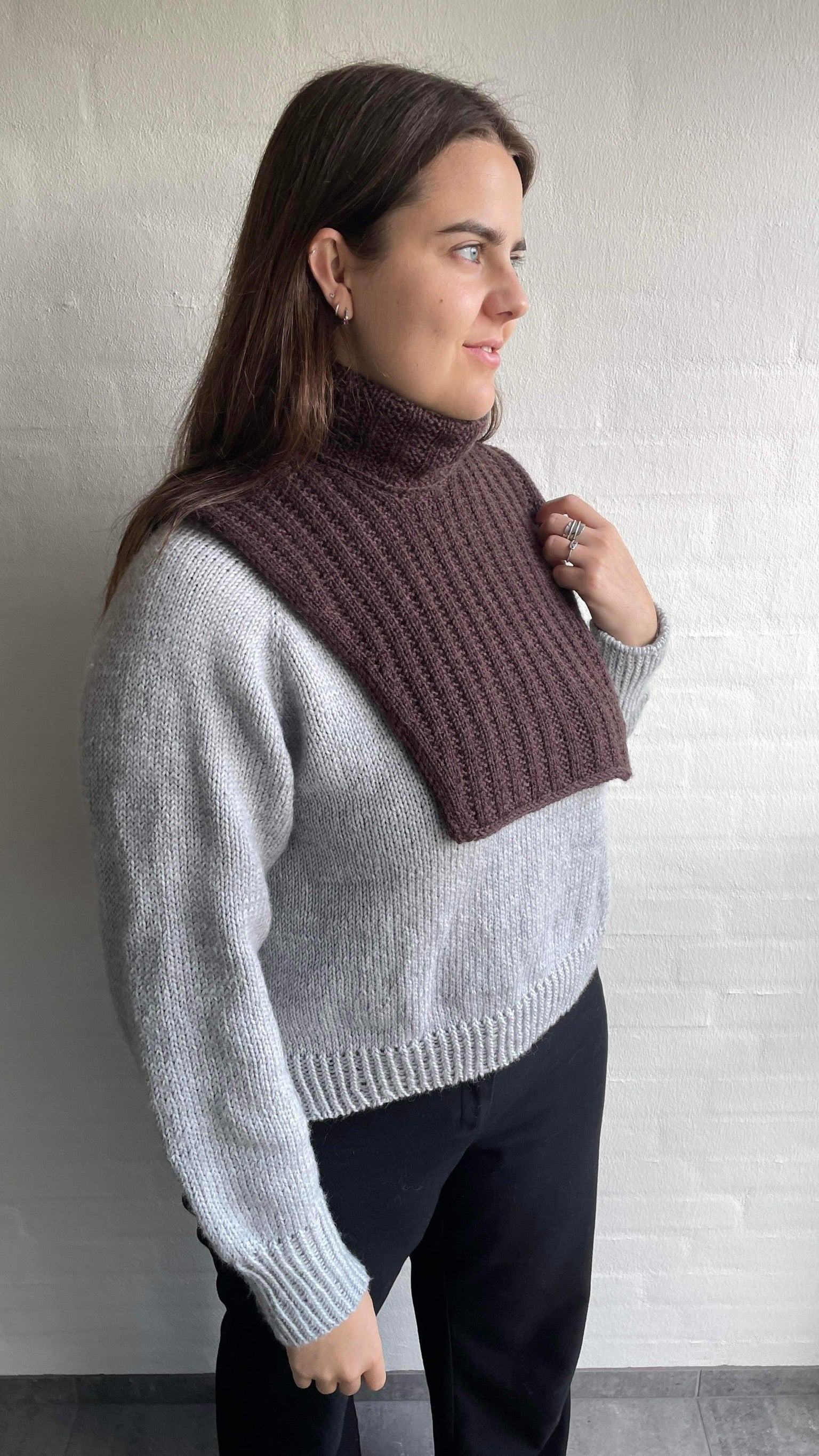 Easy Daily Neck is perfect for the chilly season. It adds a bit of warmth under a jacket - it is especially good for coats with a deep neckline as it ensures that you do not get a cold neck and chest. This knitting pattern solely consists of simple techniques and it includes step-by-step video guides.