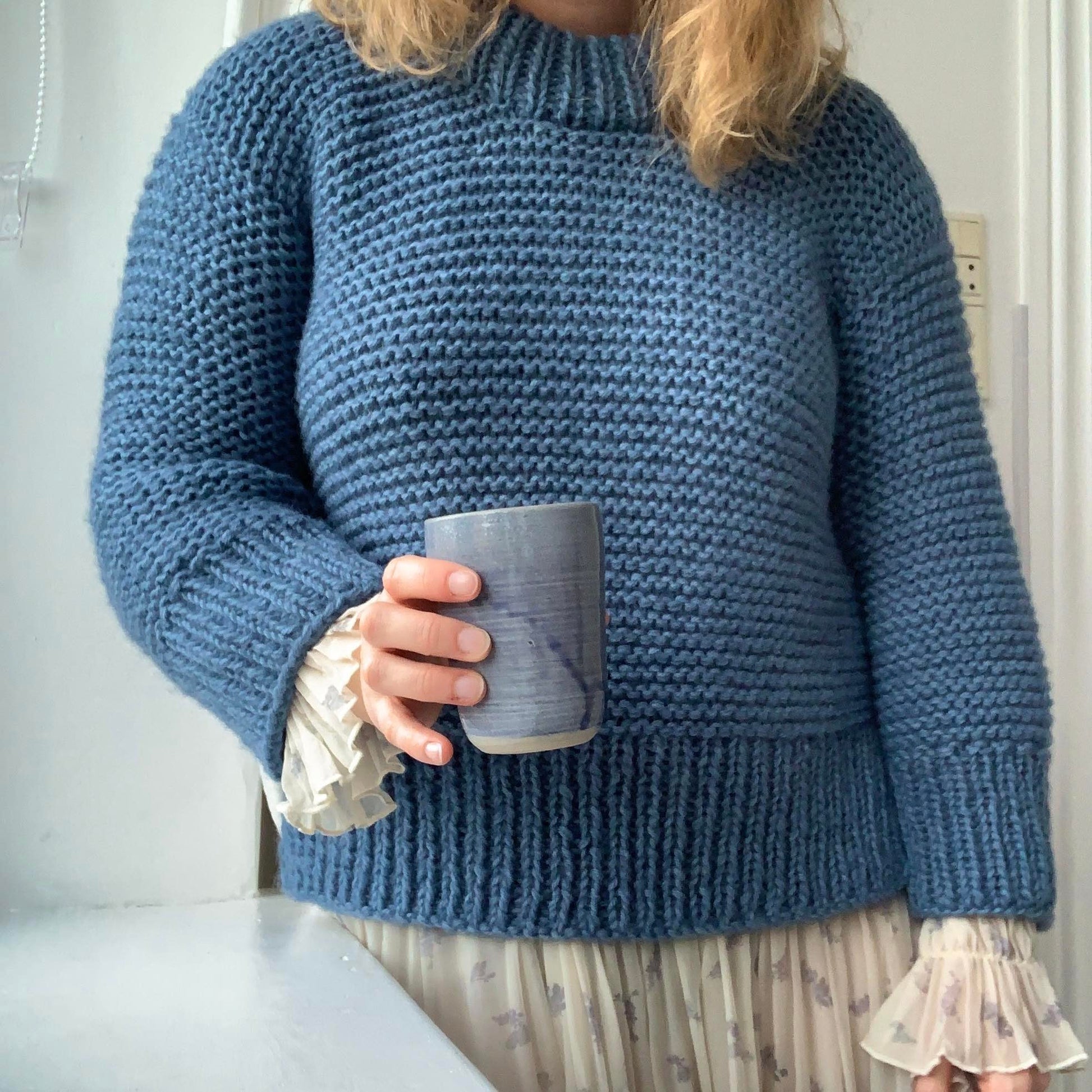 Ultra Easy Sweater is a basic and simple sweater. The body is made in one piece of garter stitch. It is made on chunky needles and is therefore a super quick project - perfect for the beginner.