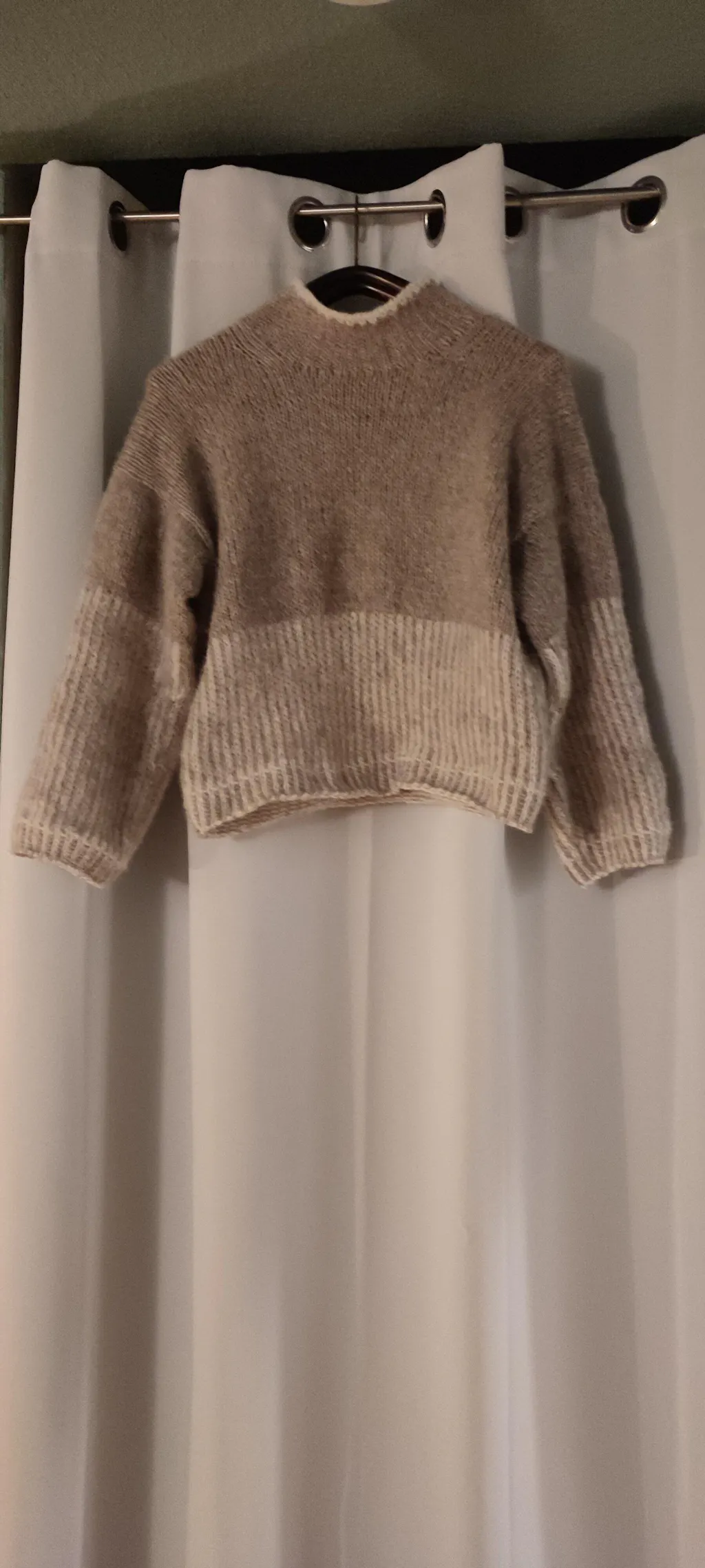 Habe mich auf Insta in den Pulli verliebt und musste ihn sofort nachstricken. Er ist wirklich simpel gehalten und macht Spass. Da ich Urlaub hatte war ich in ein paar Tagen fertig. Ich nahm Drops Air in beige und weiss als Farbvariante. Absolut empfehlenswert. Habe ihn nach dem Waschen noch geblockt.