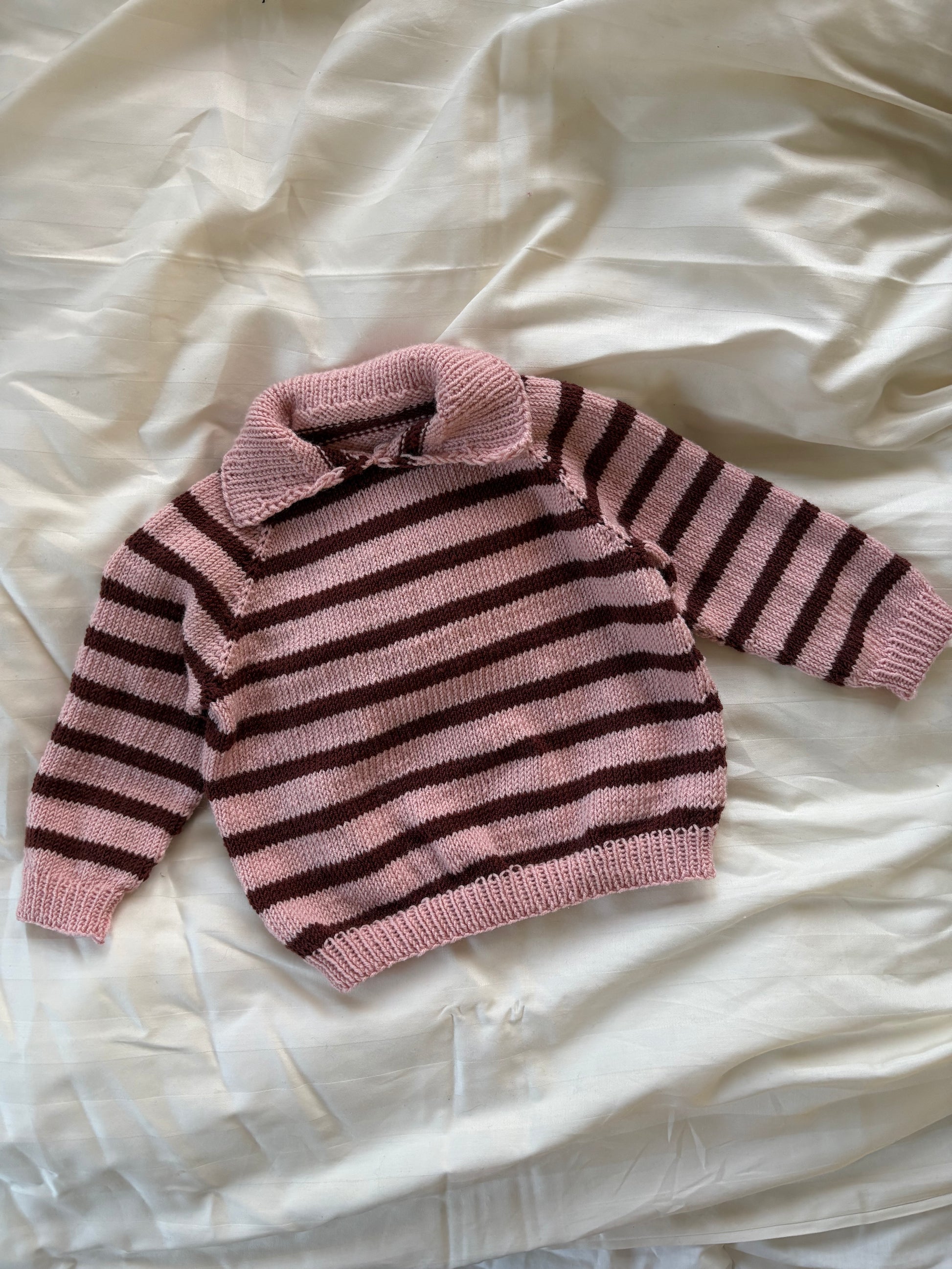 Easy Polo Sweater Junior ist ein einfacher, anfänger:innenfreundlicher Pullover mit Kragen. Der Pulli wird von oben nach unten in einfachen Techniken gestrickt und der simple Ausdruck gibt viel Spielraum fürs Experimentieren mit spannenden Farbkombinationen.