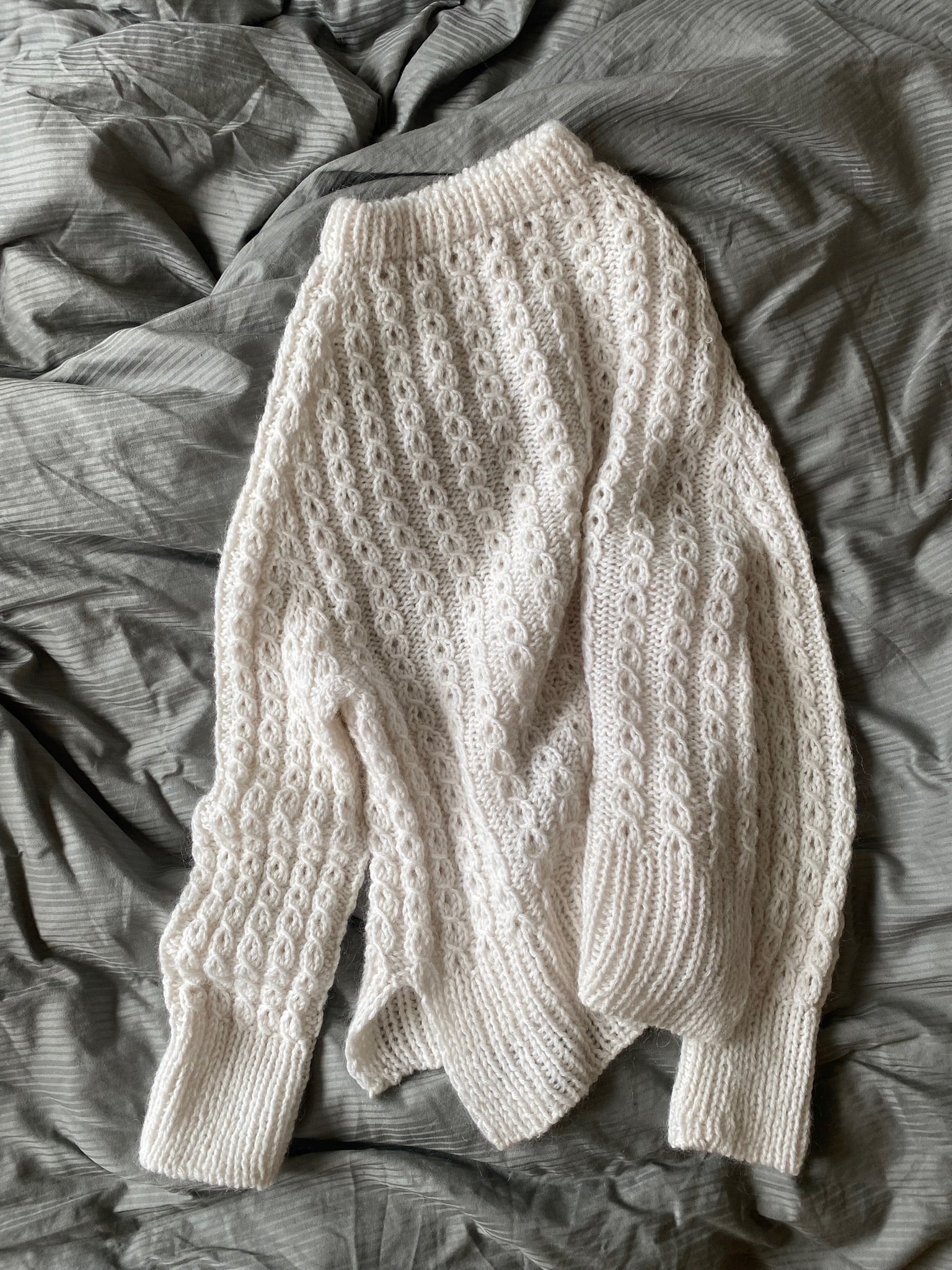 Easy Twist Sweater ist perfekt für dich, wenn du ein relativ einfaches Strukturmuster ausprobieren willst, nämlich falsche Zöpfe. Das falsche Zopfmuster wird mit ganz gewöhnlichen Techniken wie rechts, links, umschlagen und abnehmen gestrickt. Der Pullover hat eine feminine und schöne Schulterpartie.