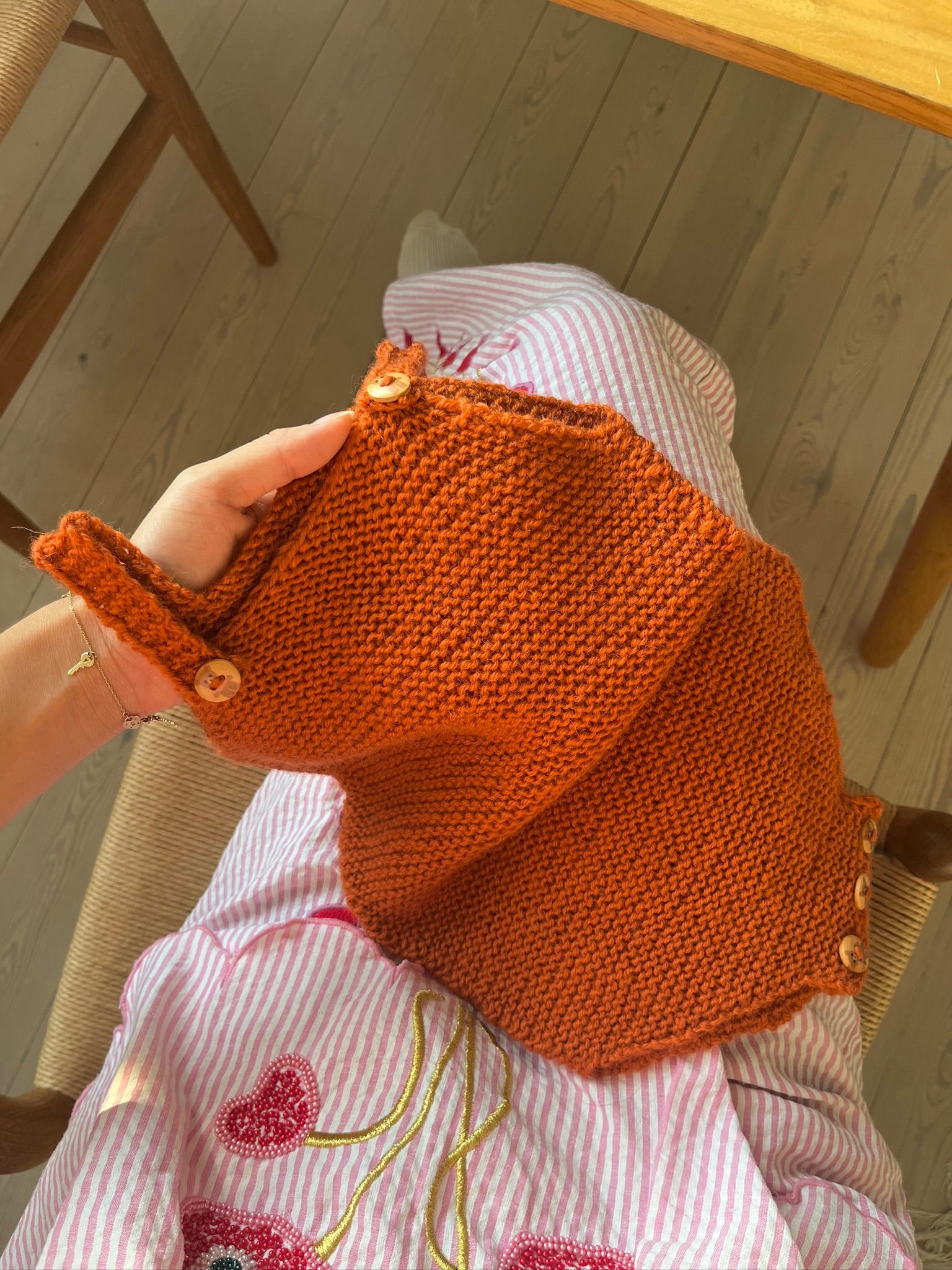 Dieser Strampler ist perfekt über einem Body oder Strumpfhosen. Er wird nur kraus und mit einfachen Techniken gestrickt. Der Strampler ist deshalb ein ideales Projekt für Anfänger:innen.