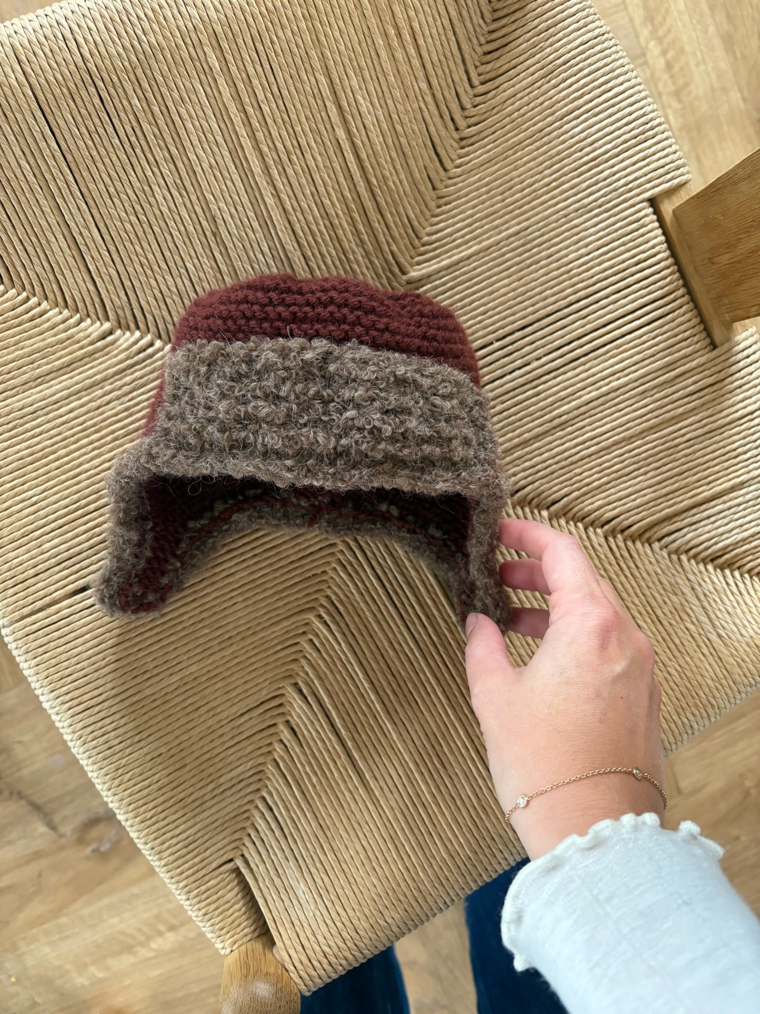 Ultra Easy Pilot Hat ist eine einfache Pilotmütze, die kraus rechts und mit einfachen Techniken gestrickt wird, sodass die perfekt für Anfänger:innen ist. Sie wird von unten nach oben gestrickt, und mithilfe von Zu- und Abnahmen geformt.