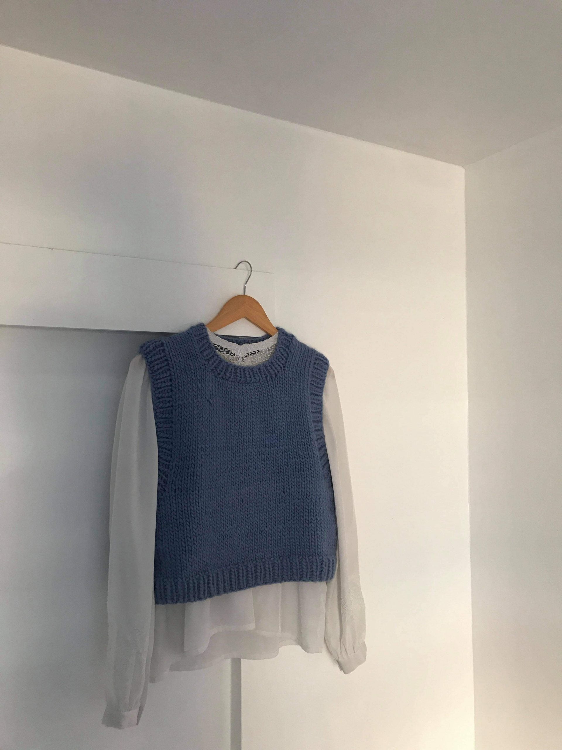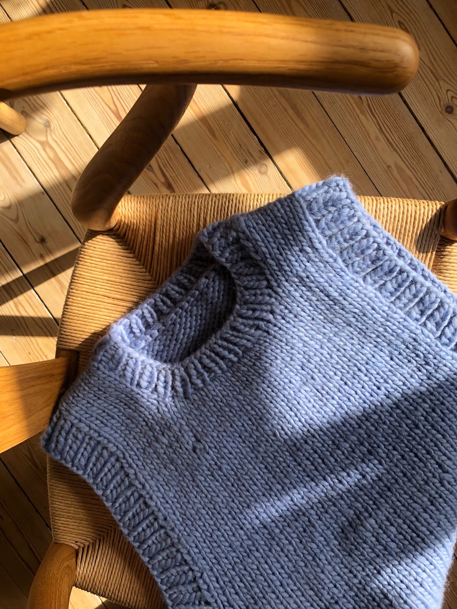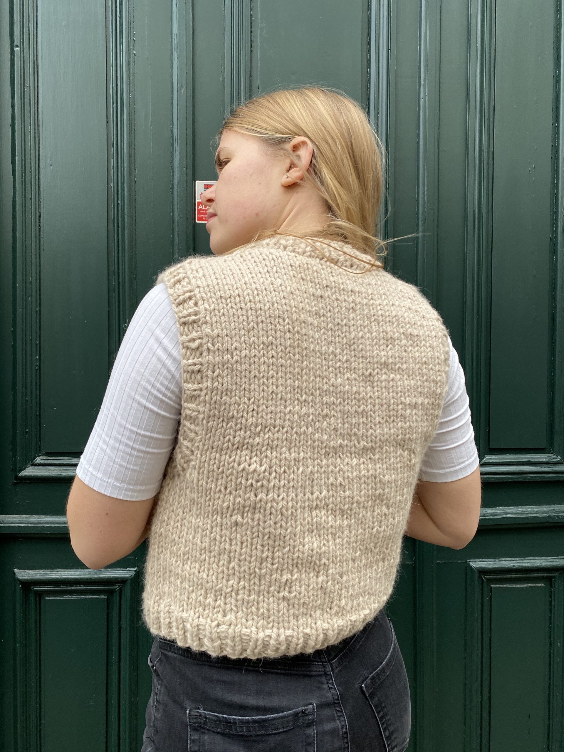 Easy Basic Vest er et veldig nybegynnervennlig prosjekt å strikke! Vesten strikkes for det meste i rett- og vrangmasker. Dersom du ikke har lært å strikke rett og vrang, kan du benytte deg av våre utførlige videoguider til alle steps av vesten. Du behøver ikke å bekymre deg, vi hjelper deg hvert steg på veien! Vesten har et fint og enkelt design, og passer perfekt til å ha oppå en skjorte eller kjole i overgangsværet. Den strikkes nedenfra og opp i et tykt ullgarn, noe som gjør den til et relativt raskt prosjekt å gjennomføre. Helt til slutt strikkes det en vrangbord i ermehullene og halskanten.