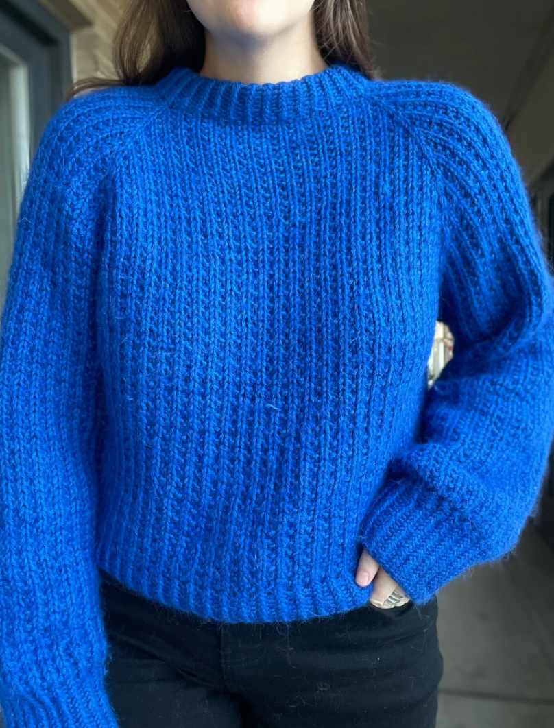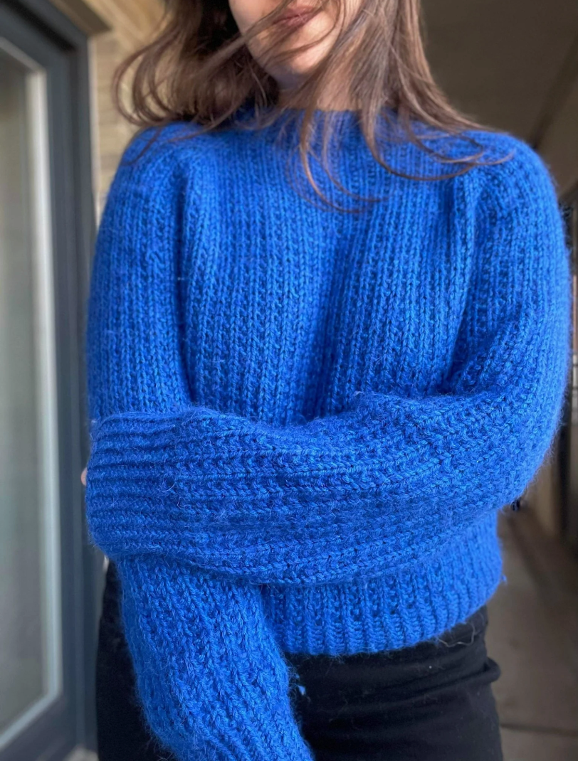 Easy Evening Sweater er god til det meste. Genseren strikkes med enkle teknikker, derfor er det en perfekt oppskrift til nybegynnere. Genseren strikkes på tykke pinner med et chunky garn og er derfor et raskt prosjekt.