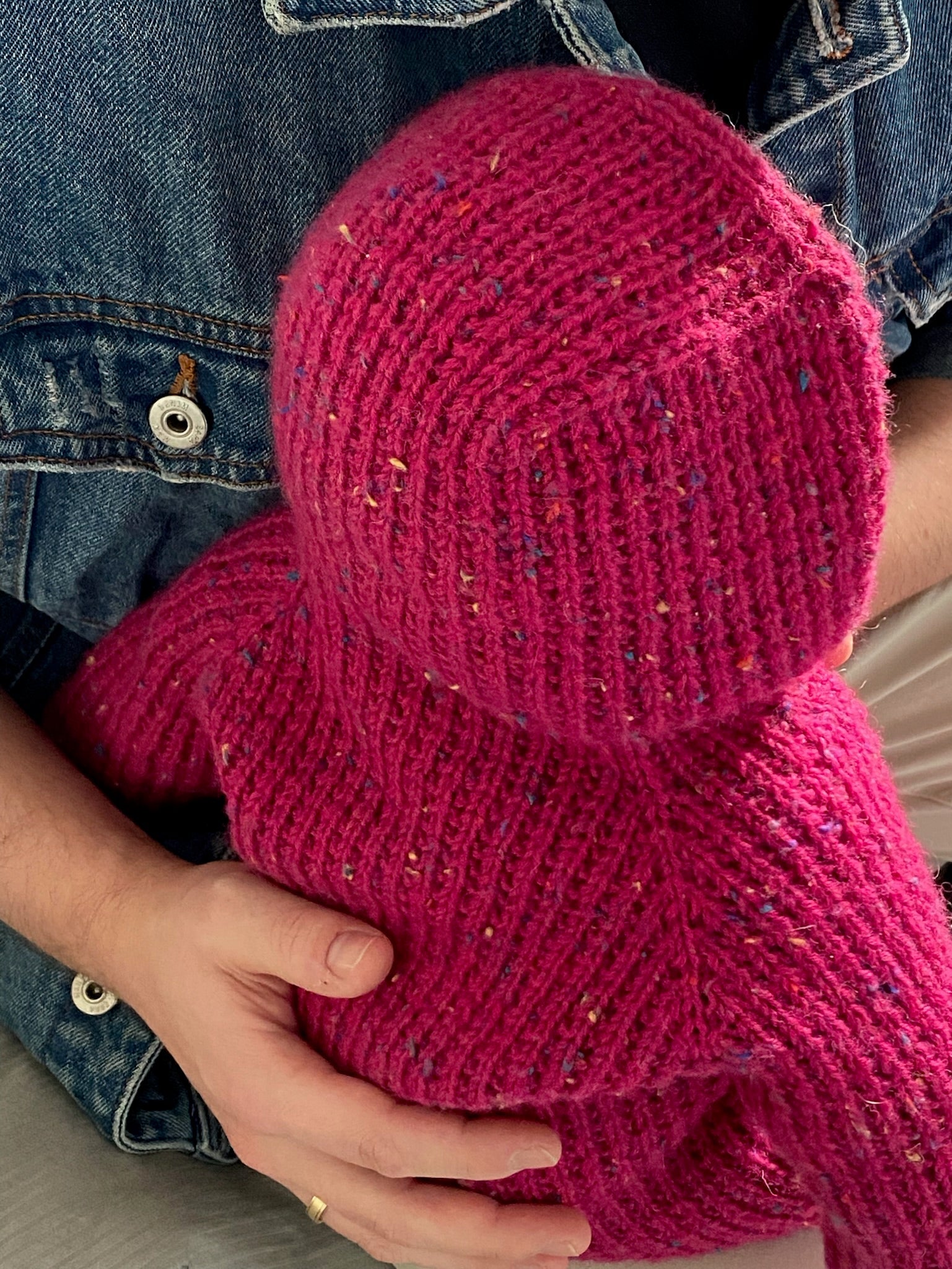 Det er en meget nem opskrift med meget detaljerede videoer. Det er et meget fint mønster, der er nemt at strikke.