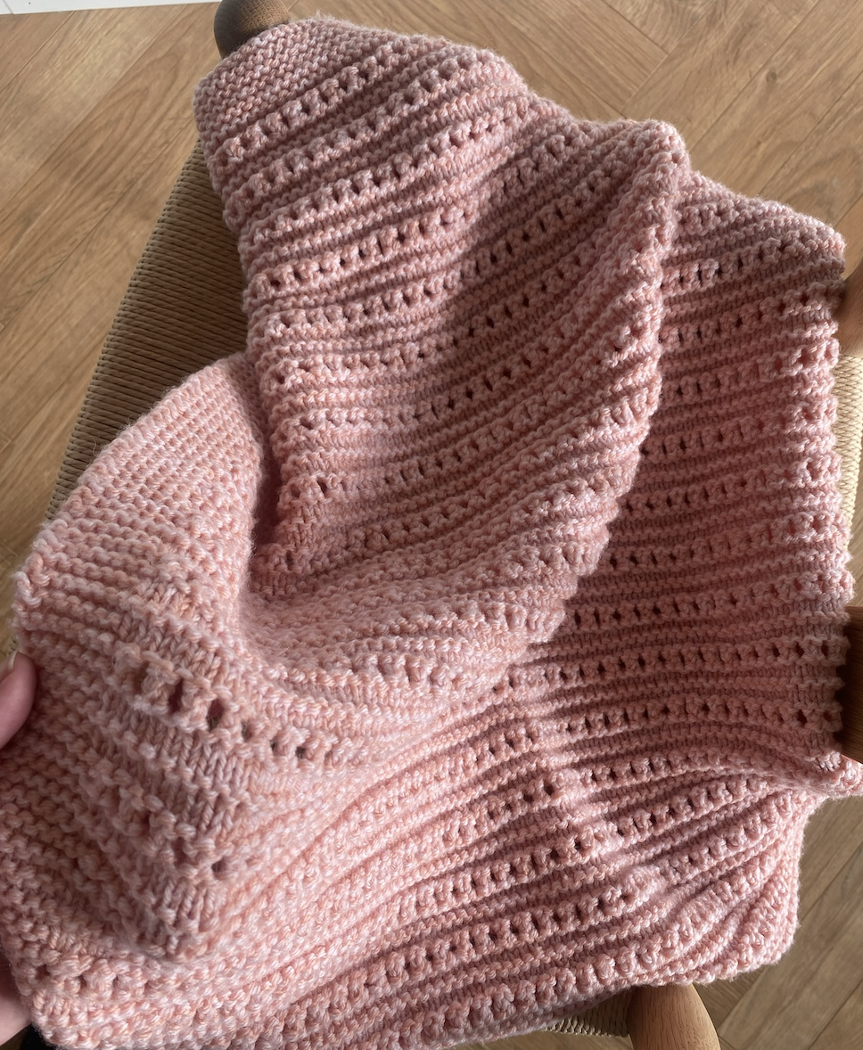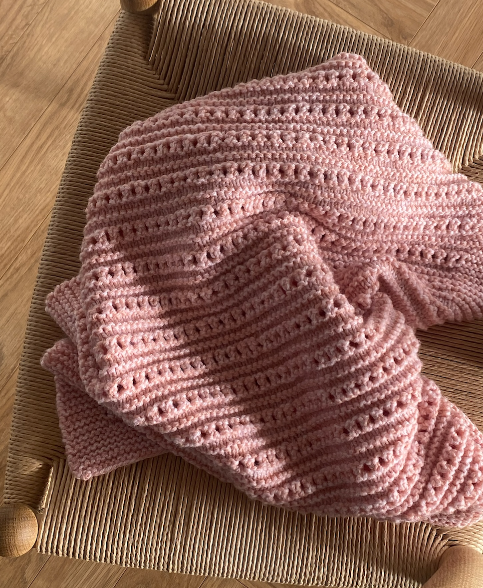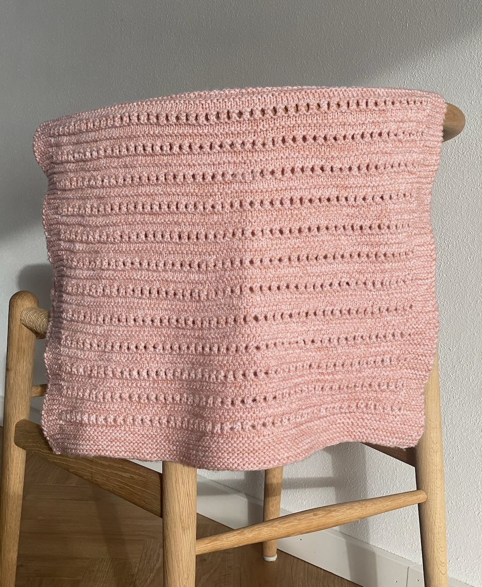 Easy Spring Blanket er et tidløst babyteppe strikket i et enkelt hullmønster. Teppet strikkes frem og tilbake.