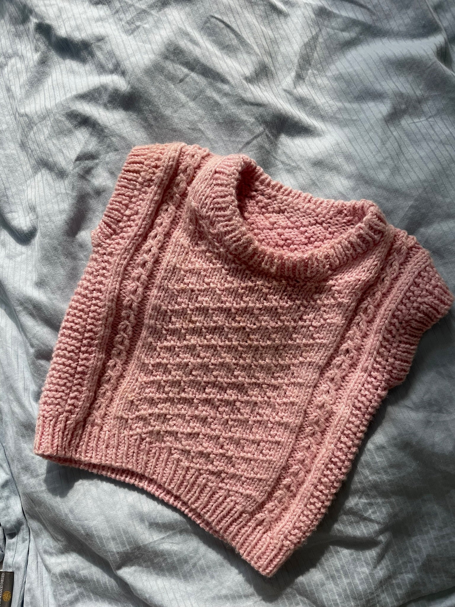 The Diamond Structure Vest Junior is a vest made in multiple different structure patterns such as staggered double rib stitch, diamond structure and mock cables. It is made from the top down and the ribbed edges are added in the end.