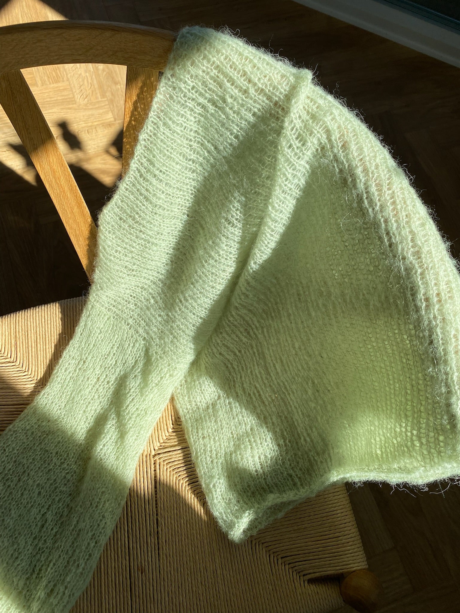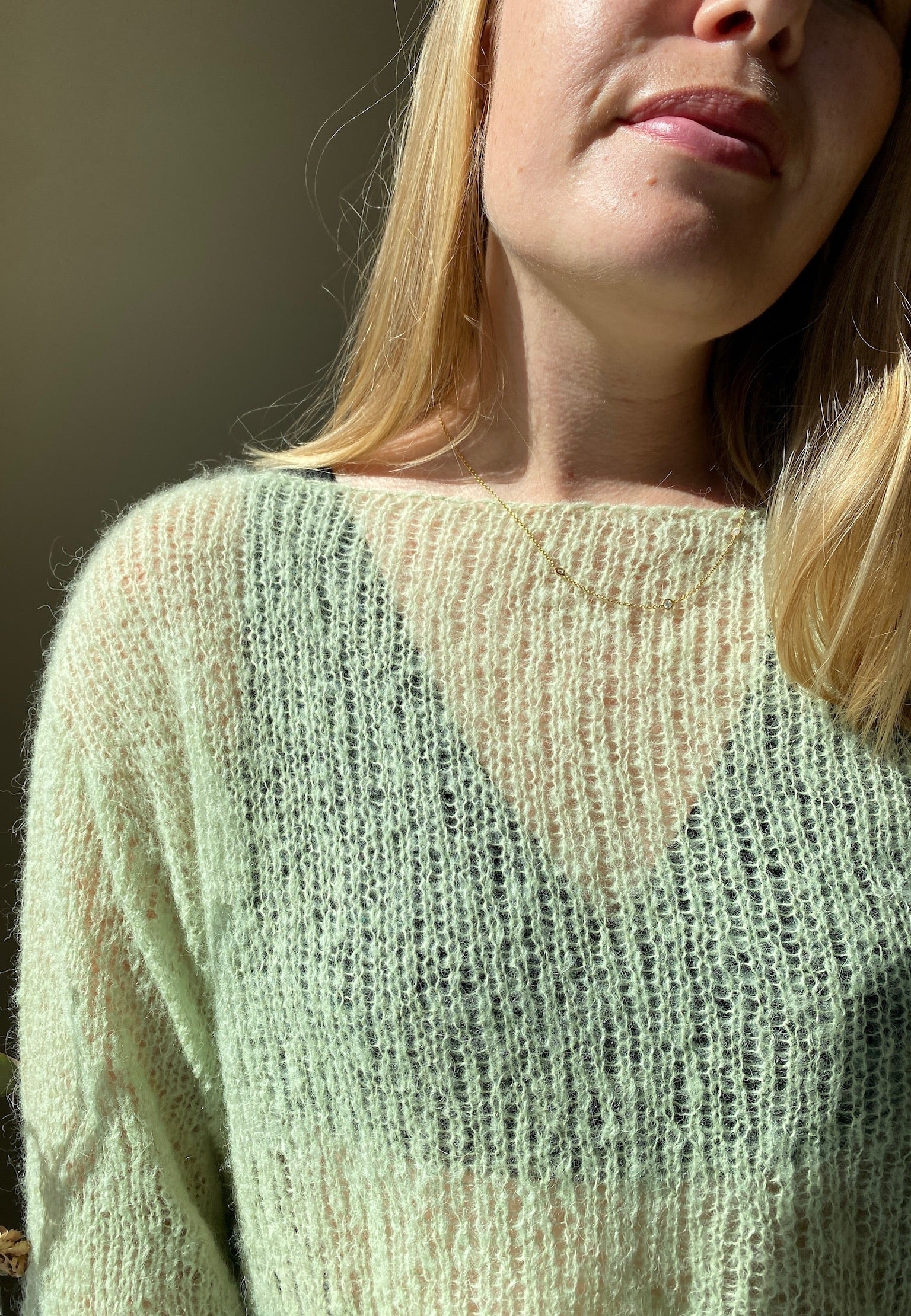 Yarn alternative 3: 1 strand of Sandnes Tynn Silk Mohair to achieve a mesh look (25g=212m). You will need 4 (4) 4 (4) 5 (5) 5 (6) balls.