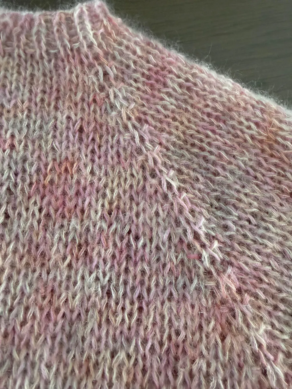 Yarn alternative 1: 2 strands of Drops Air (50g=150m). Depending on size, you need 7 (8) 9 (10) 11 (12) 12 (12) balls. Additionally, you can add 1 strand of Drops Kid Silk (25g=210m). Depending on size, you need 3 (3) 3 (4) 4 (4) 4 (4) balls