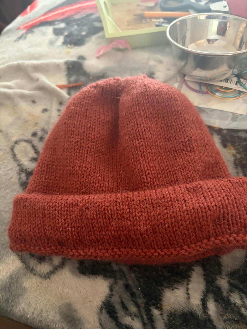 This hat is the first-ever knitting project I have ever completed. It went really well; the instructions were super easy to understand, and the YouTube videos were also super helpful. The result is a hat my son has been wearing every day. It's not perfect but I am super proud of it. I highly recommend it for beginning knitters.