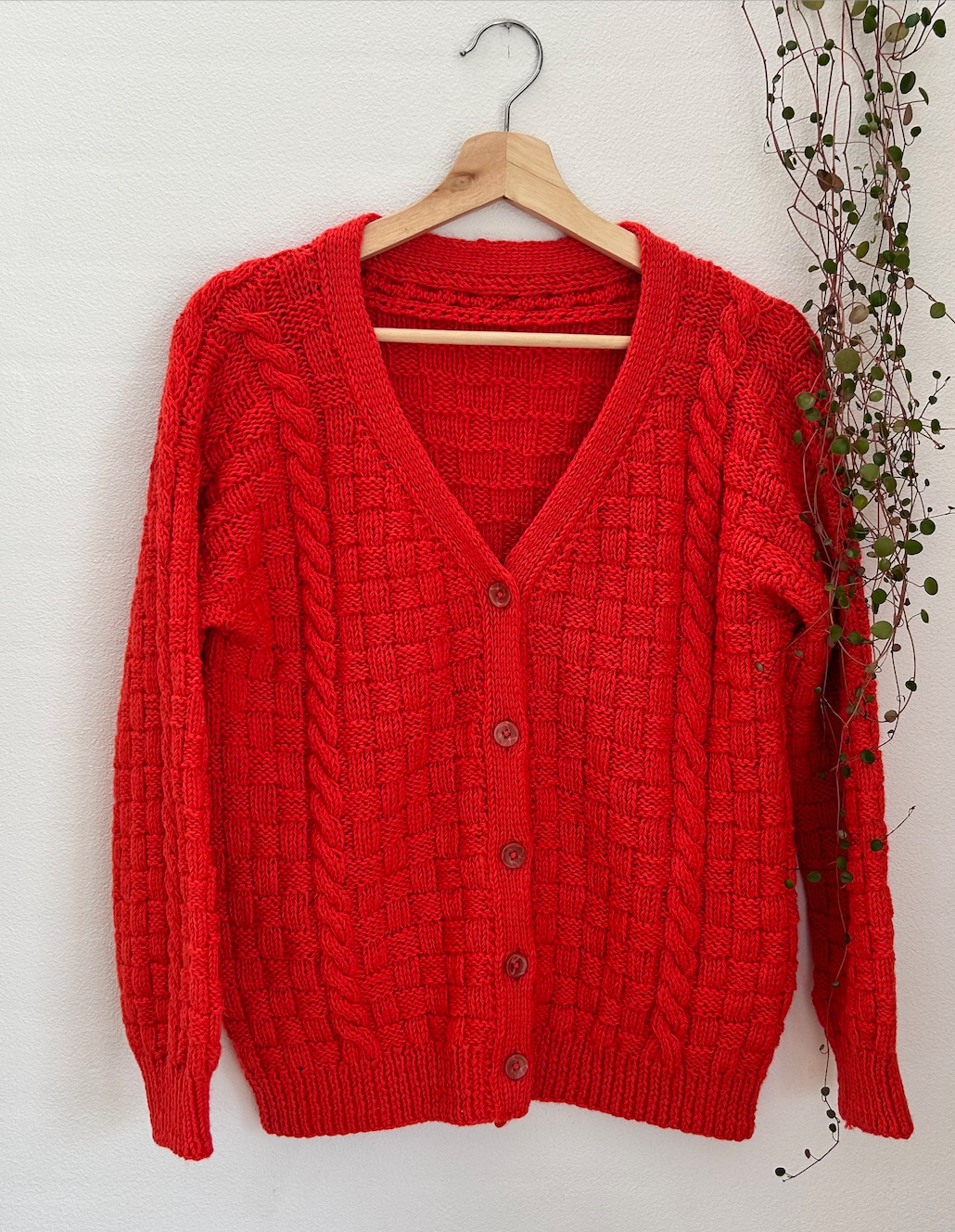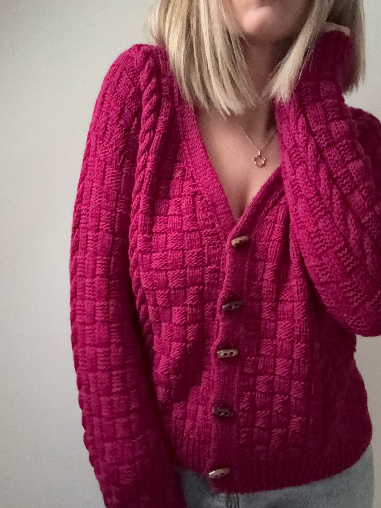 The Easy Summer Cardi is a cardigan worked from the top down in a chequered pattern with cables. This pattern is full of fun and exciting techniques such as a provisional cast on, Italian/tubular cast on and bind off, and double knitted button bands.